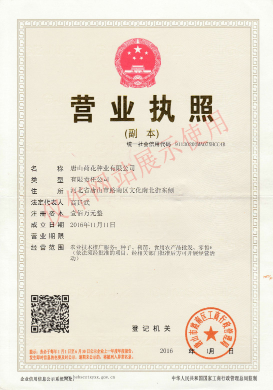唐山荷花種業有限公司始創于1984年,一直秉承“科技為先,誠信為本”的發展指導戰略,注冊商標“荷花”牌,經過三十多年的發展,建立了從親本選育、試驗示范、生產檢驗、精選加工、推廣銷售及農業技術咨詢一體化的經營體系,目前擁有試驗基地、繁育基地、制種基地、及規?;N子冷貯藏庫,完善了由科研、檢驗、生產、銷售各個配套環節。荷花牌系列種子正是我們在堅持“誠信、品質、開拓、創新”的企業精神下打造的種子品牌,如今,在全國已形成強勢品牌效應,是一個值得信賴與具有一定影響力的種子品牌,在全國廣大用戶中贏得了良好的口碑和信譽... ...